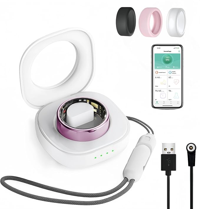 - 【Long Battery Life】After Sleep Ring is fully charged, it can be used continuously for up to 5-7 days, Paired with free 300mAh mini charging case, Fitness Tracker Ring can provide 10-15 cycles of charging for the ring, and there is no need to worry about electricity frequently