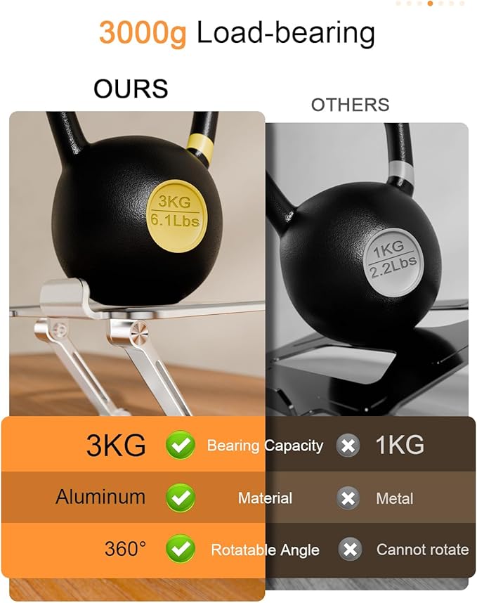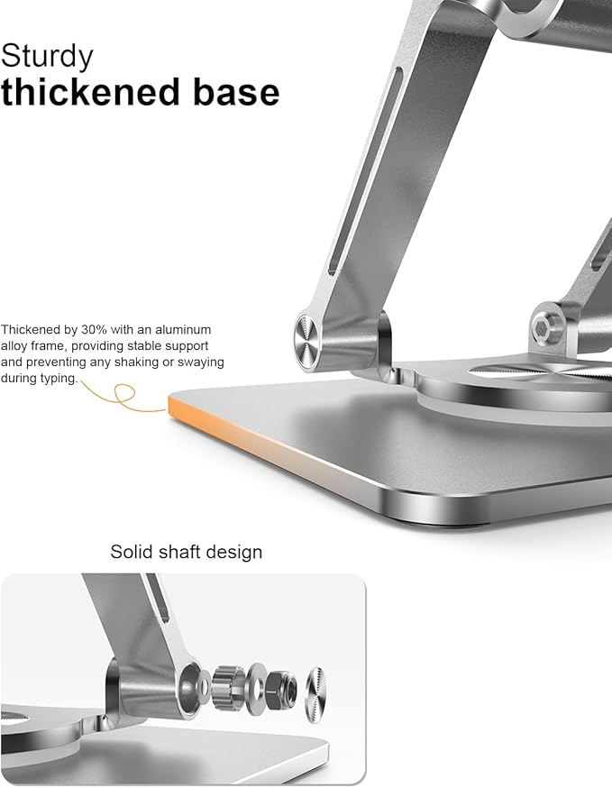 - Adjustable Height & 360° Rotation: Multiple adjustable heights and a 360° rotating base, you can choose the height and angle you want, making it convenient for you to easily switch between typing, watching, video calls or reading, and share the screen.