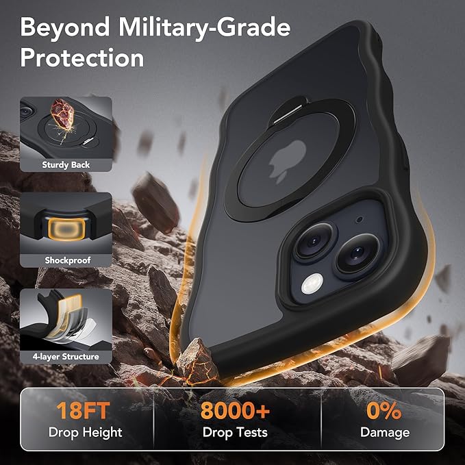- [Compatible with Magsafe & QI Wireless Charger]Features powerful N52 magnets for a secure, shake-free grip with all magnetic accessories (wallets, car mounts, power banks, etc.). The invisible magnetic stand design ensures fast wireless charging with zero interference.