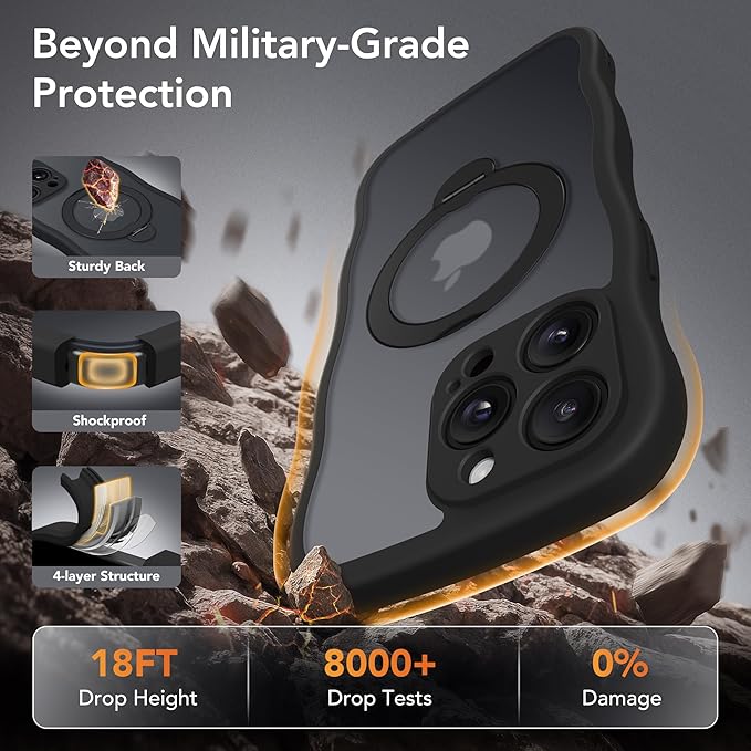 - [Compatible with Magsafe & QI Wireless Charger]Features powerful N52 magnets for a secure, shake-free grip with all magnetic accessories (wallets, car mounts, power banks, etc.). The invisible magnetic stand design ensures fast wireless charging with zero interference.