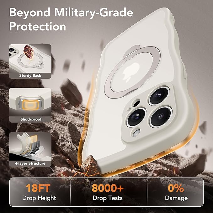 GolbinBox for iPhone 13 Pro Max Case for Women,[Compatible with Magsafe][360° Spin Magnetic Stand][Cute Wave Edge][Military-Grade Protection] Translucent Matte Phone Case for iPhone 13 ProMax, Stone