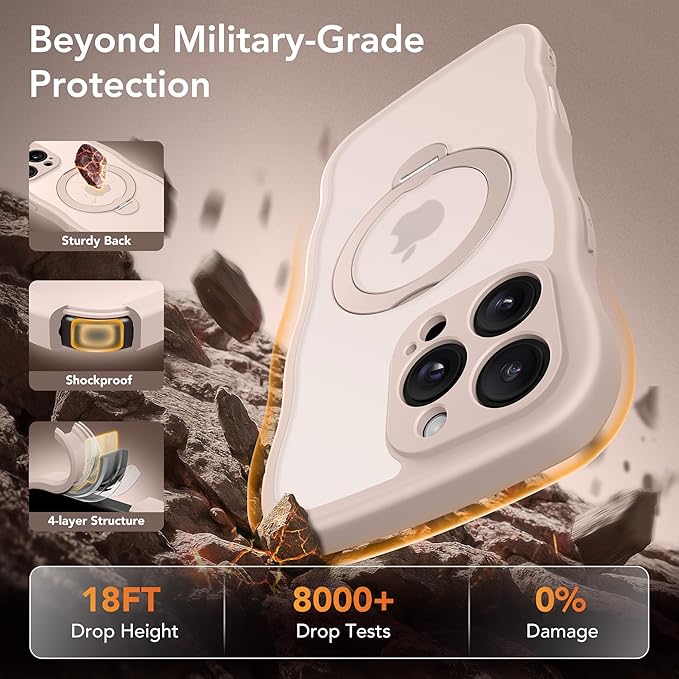 GolbinBox for iPhone 16 Pro Case for Women,[Compatible with Magsafe][360° Spin Magnetic Stand][Cute Wave Edge][Military-Grade Protection] Translucent Matte Phone Case for iPhone 16 Pro, Rose Gold