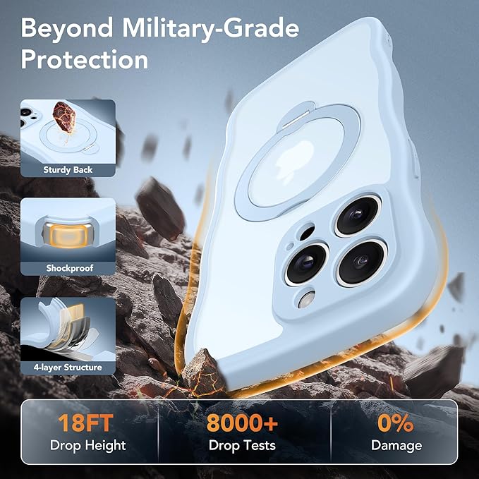 for iPhone 14 Pro Max Case for Women,[Compatible with Magsafe][360° Spin Magnetic Stand][Cute Wave Edge][Military-Grade Protection]Translucent Matte Phone Case for iPhone 14 ProMax, Baby Blue
