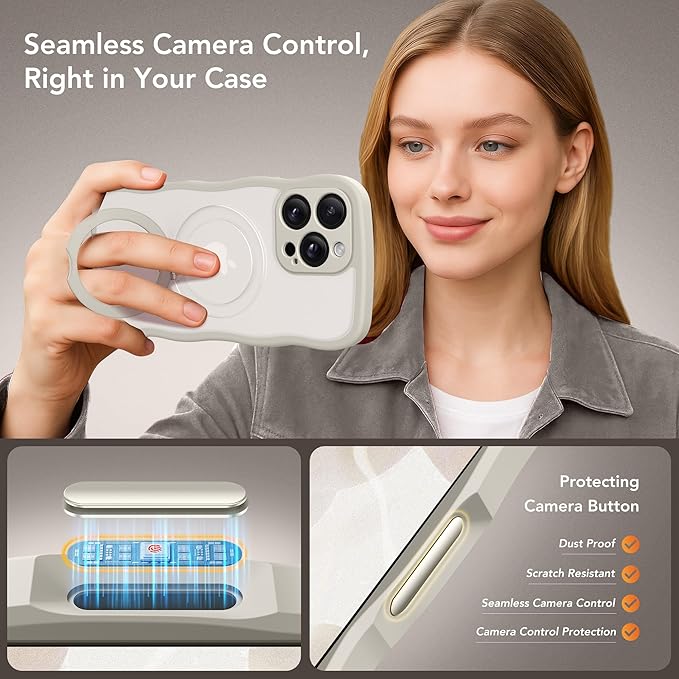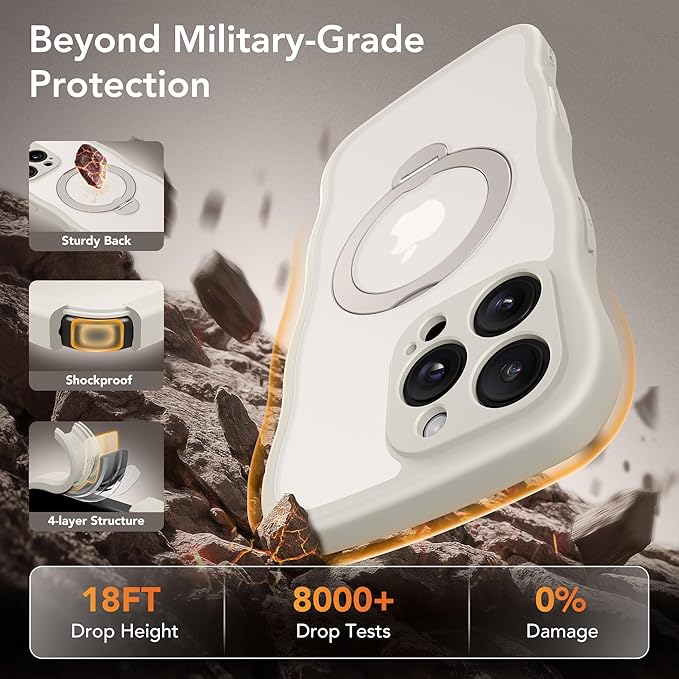 GolbinBox for iPhone 16 Pro Case for Women,[Compatible with Magsafe][360° Spin Magnetic Stand][Cute Wave Edge][Military-Grade Protection] Translucent Matte Phone Case for iPhone 16 Pro, Stone