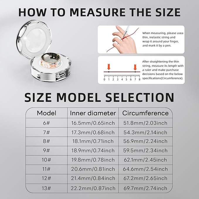 - 😪🛏️Body Monitor Ring | Family Care Mode:Monitor health data via app with this smart health ring, perfect for family tracking. Doubles as a remote camera control ring for hands-free photos.
