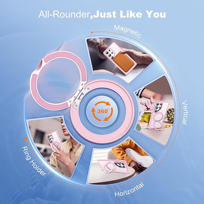 - Hands-Free Kickstand - Innovative 360° Rotatable Magnetic Ring Stand can be placed in portrait or landscape. You can adjust it as your wished. Enjoy every watching moment without extra support.