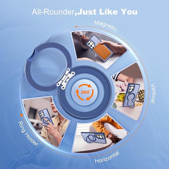 for Samsung Galaxy S25 Ultra Case with 360°Rotatable Magnetic Ring Stand Compatible with Mag-Safe Military Protection Shockproof Matte Translucent Phone Cases for S25 Ultra 6.9",Blue