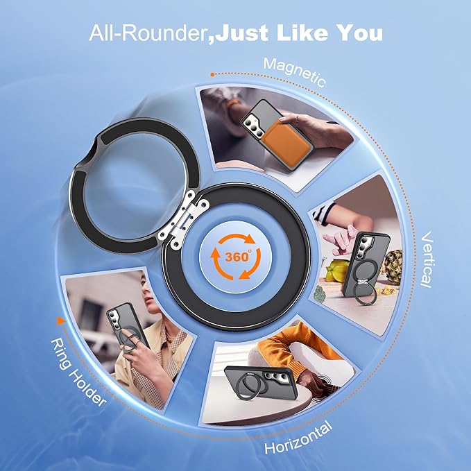 - Hands-Free Kickstand - Innovative 360° Rotatable Magnetic Ring Stand can be placed in portrait or landscape. You can adjust it as your wished. Enjoy every watching moment without extra support.