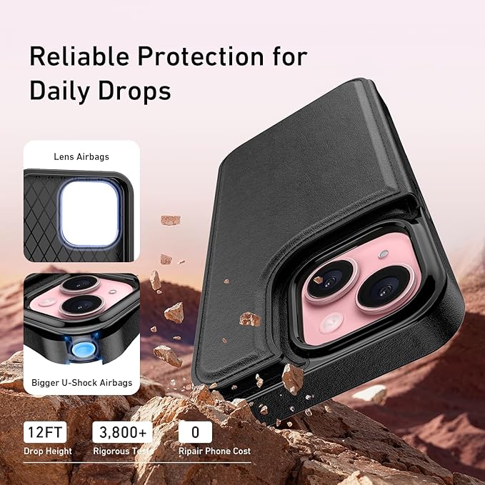- Military-Grade MIL-STD-810G Protection - Crafted with premium leather and reinforced shock-absorbent corners, this iPhone 14 Plus case offers military-grade MIL-STD-810G protection against drops of up to 1.2 meters, making it ideal for daily adventures or accidental slips. Additionally, it features a 5,000+ cycle magnetic clasp for instant, secure closure and 45° to 90° adjustable kickstand for binge-watching, video calls, or reading—all designed for convenient one-hand operation.