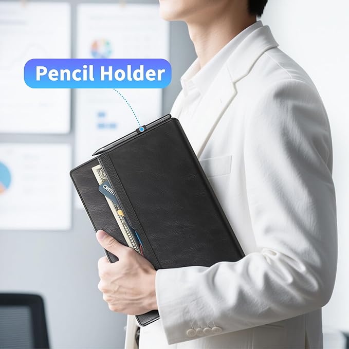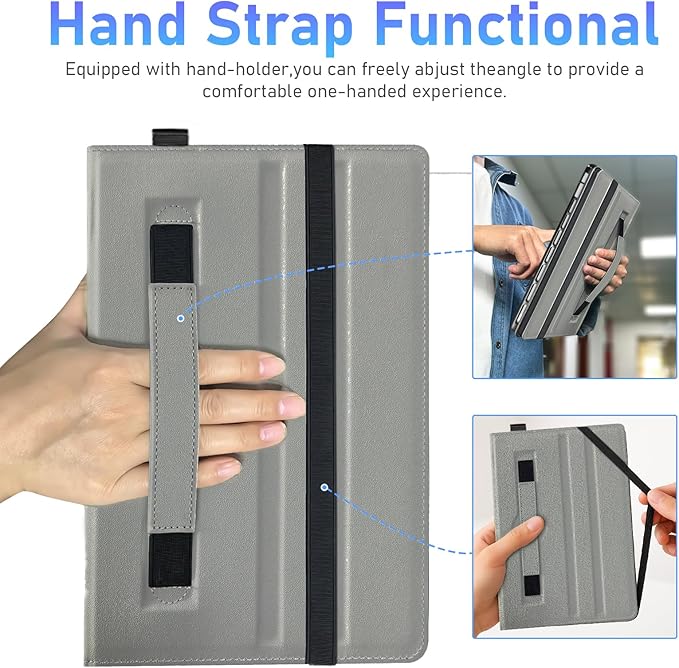 - 【All-in-One Functional Design】 Front pocket for documents/cards, and a built-in pencil holder to secure your stylus. The elastic hand strap offers a secure one-handed grip for commuting or travel