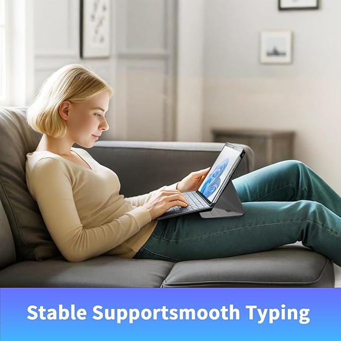 - 【Multi-Angle Adjustable Stand】Built-in grooved stand supports 2 viewing angles for typing, streaming, or drawing for perfect ergonomics in meetings, travel, or creative work