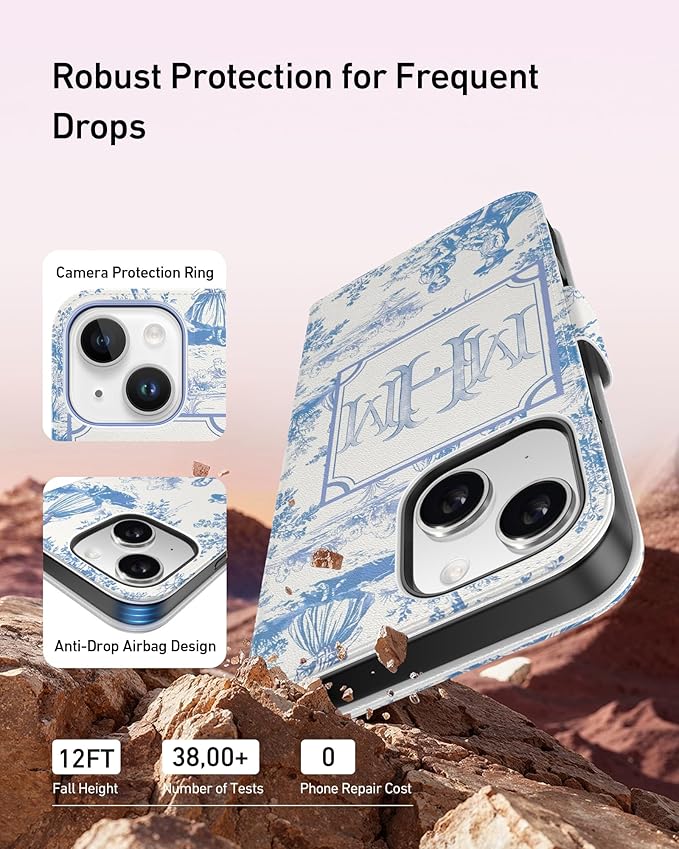 DEENAKIN for iPhone 15 Wallet Case with Card Holder + Cash Clip, RFID-Blocking, Military-Grade Drop Protection, Magnetic Closure with Leather Kickstand - Heritage Artistry