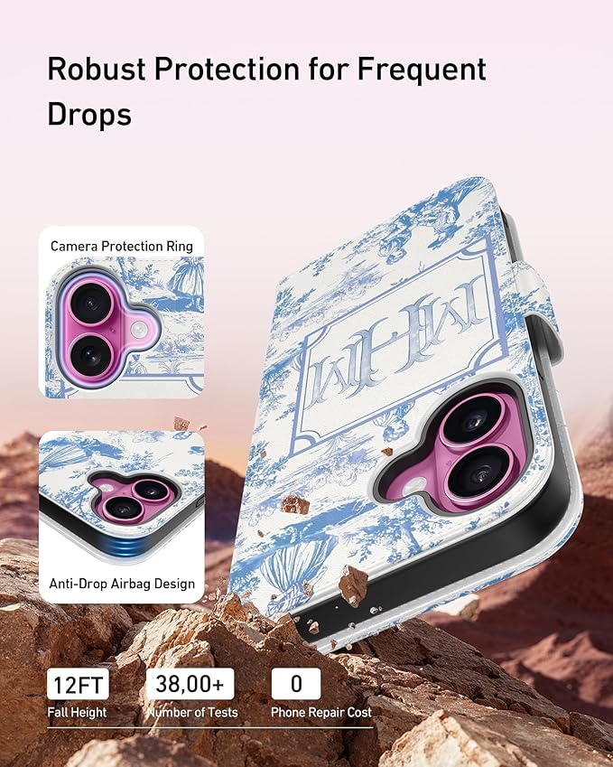 DEENAKIN for iPhone 16 Plus Wallet Case with Card Holder + Cash Clip, RFID-Blocking, Military-Grade Drop Protection, Magnetic Closure with Leather Kickstand - Heritage Artistry