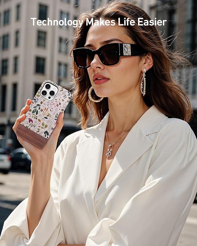 DEENAKIN for iPhone 16 Pro Max Wallet Case with Card Holder + Cash Clip, RFID-Blocking, Military-Grade Drop Protection, Magnetic Closure with Leather Kickstand - Vibrant Foliage