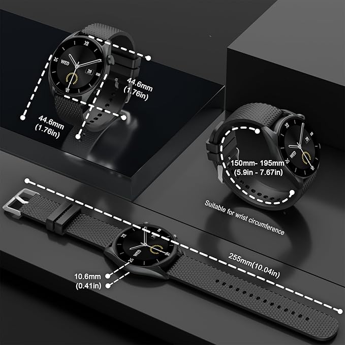 - 【Bluetooth call & message reminder】After the smart watch is connected to the smartphone via Bluetooth, you can keep up with your latest updates at any time. You can make/answer/reject calls, synchronize contacts and save call records. It also supports message notifications (Facebook, WhatsApp, Instagram, Twitter, etc.) so that you don’t miss any important information. This smart watch with alexa.,just speak to the watch to ask questions, control music playback, check the weather, and set alarms (message replies are not supported).