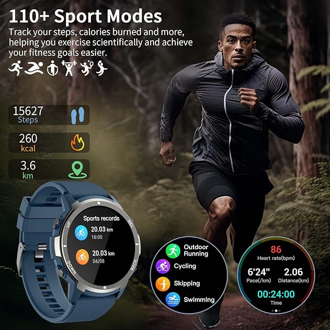 - Bluetooth Call & Message Notifications: The Bluetooth smartwatch supports sync- of over 99 mobile phone contacts, and you can make and answer calls directly on the smartwatch. In addition, you can also receive notifications from social applications such as Facebook, X, WhatsApp, etc., so you won't miss any important information