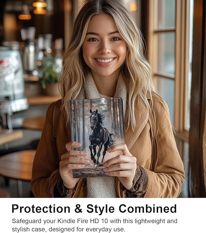 Case for Samsung Galaxy Tab A9 8.7-Inch 2023, Slim PU Leather Stand Cover with Auto Wake/Sleep, Multi-Angle Viewing & Shockproof, Black Horse