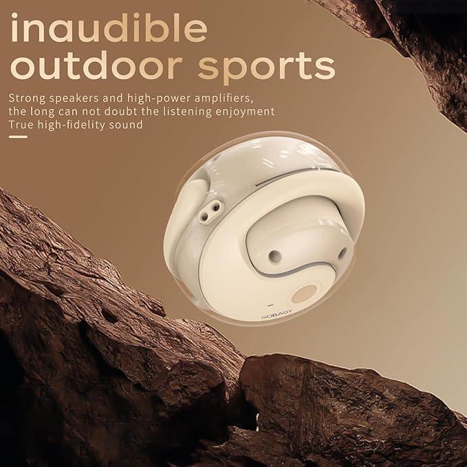Open Ear Wireless Hanging Earbuds, Ideal for Workout, Non - in - Ear Design with Wireless Connectivity, Sports - Oriented with Ultra - Long Battery Life, Spherical Shape, Cream