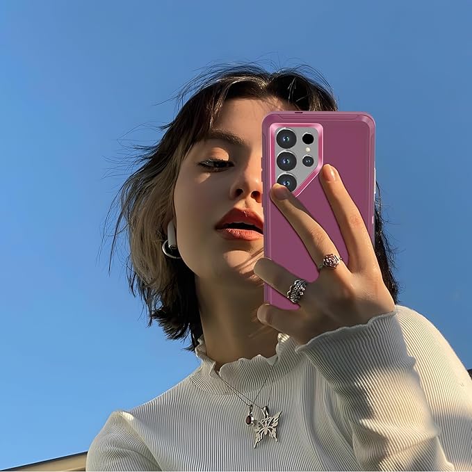 Designed for Samsung Galaxy S25 Ultra Case [with Privacy Screen Protector] 3-Layer Full Body Protection Rugged Shockproof Heavy Duty Phone Case Cover, Purple/Pink
