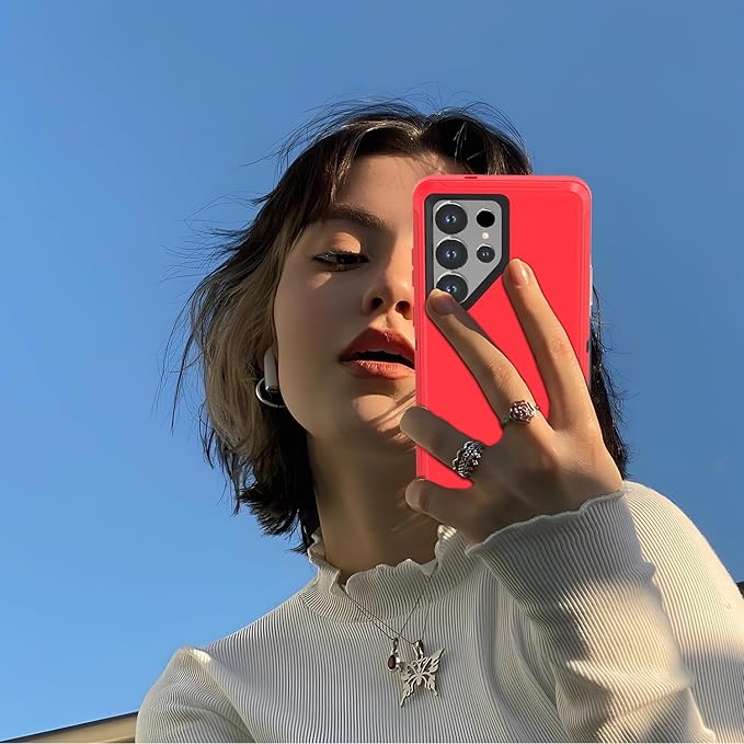 Designed for Samsung Galaxy S24 Ultra Case [with Privacy Screen Protector] 3-Layer Full Body Protection Rugged Shockproof Heavy Duty Phone Case Cover, Red/Black