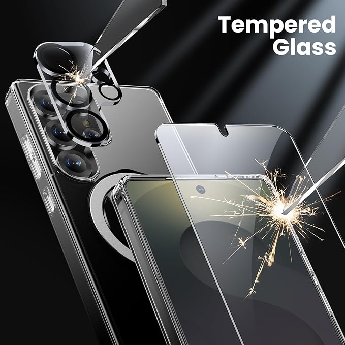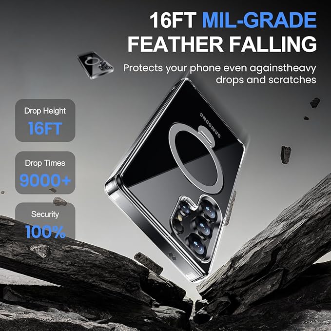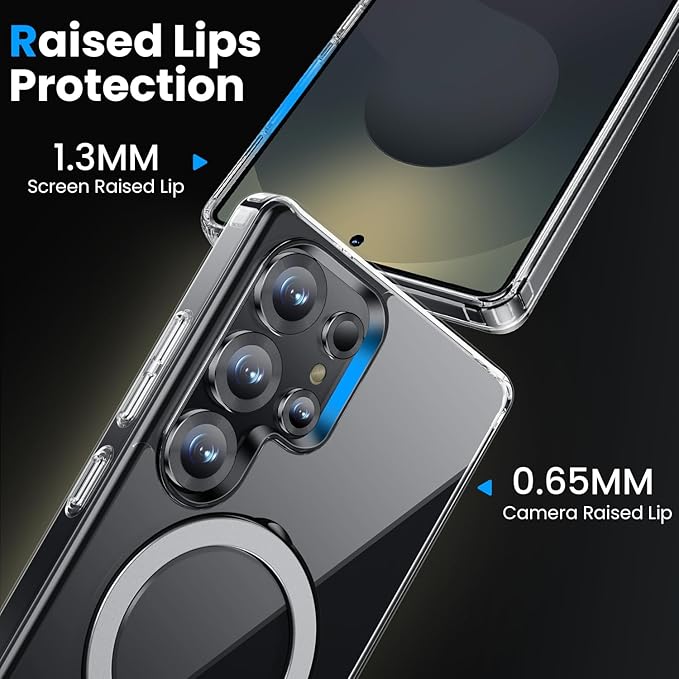 360° Rotatable Stand for Samsung Galaxy S25 Ultra Case Magnetic with Screen Protector X1 & Camera Lens Protector*1, Compatible with MagSafe, 16FT Mil-Grade Shockproof Case for S25 Ultra 6.9", Clear