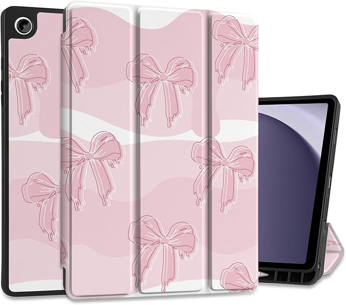 MEEgoodo Case for Samsung Galaxy Tab A9 Plus 11 inch Cover 2024 2023 with S Pen Holder, A9+ Smart Tablet Cases with Leather Trifold Stand+Soft TPU Back Shell+Smart Auto Wake/Sleep, Melted Bow