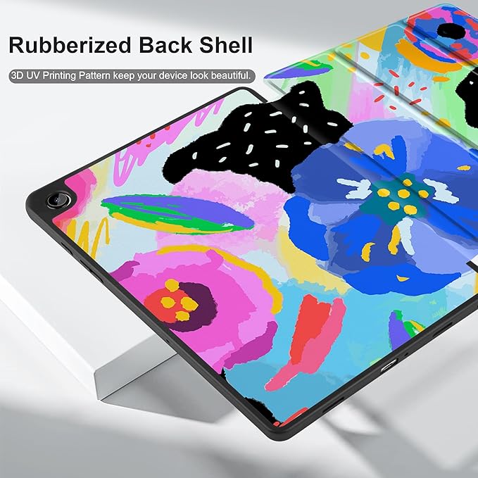 MEEgoodo Case for Samsung Galaxy Tab A9 Plus 11 inch Cover 2024 2023 with S Pen Holder, A9+ Smart Tablet Cases with Trifold Stand+Soft TPU Back Shell+Smart Auto Wake/Sleep, Colorful Painted Floral