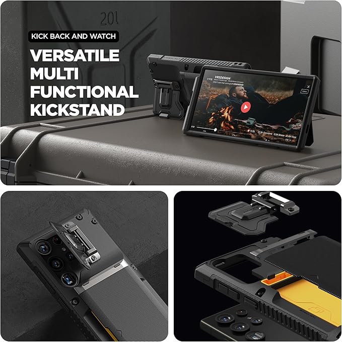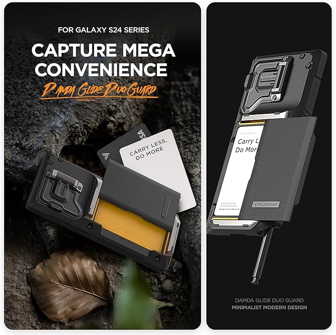 VRS DESIGN Damda Glide DuoGuard for Samsung Galaxy S24 Ultra Phone Case (2024), Premium Sturdy Fully Covered Camera Lens Protection Cover Card Holder Wallet Case (Logo Black)