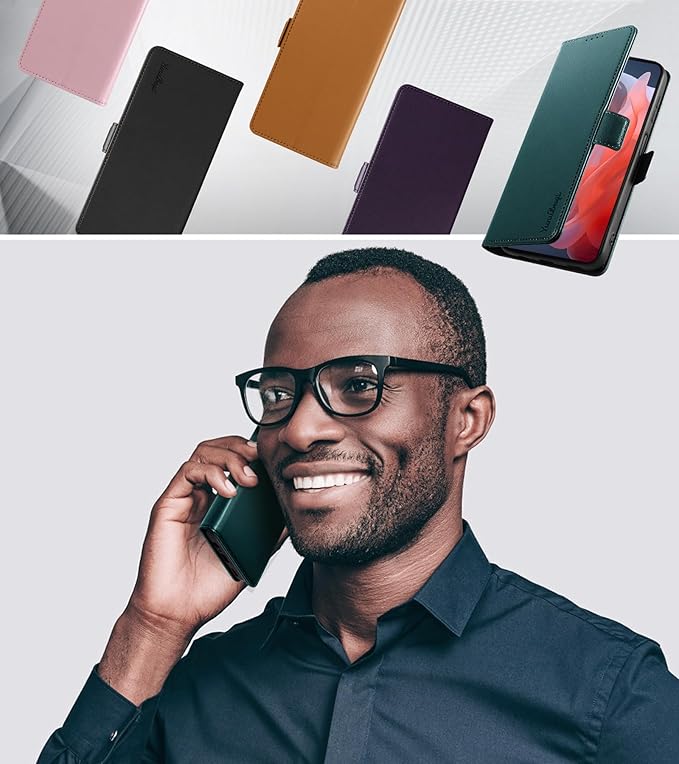 - 【High Quality Leather】: Made of the finest quality PU leather texture, superb cutting process with craftsmen's pure hand sewing to create the Leather Wallet Phone Case. Premium smooth fine grain pattern surface does not stick fingerprints, easy to clean, wear-resistant . Shockproof, dustproof, perfect protection for cell phone body and screen. Luxurious and elegant appearance suitable for any occasion and good safety cushioning performance.