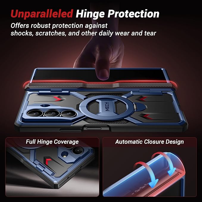 - [Full Cover Hinge Protection & Anti-slip Design] The TONGATE Z Fold 7 case comes with a sturdy automatic hinge cover that protects the hinge from scratches or breakage and does not interfere with the folding and unfolding of the phone. The groove structure on the hinge is ergonomically contoured to provide a comfortable grip and prevent accidental drops