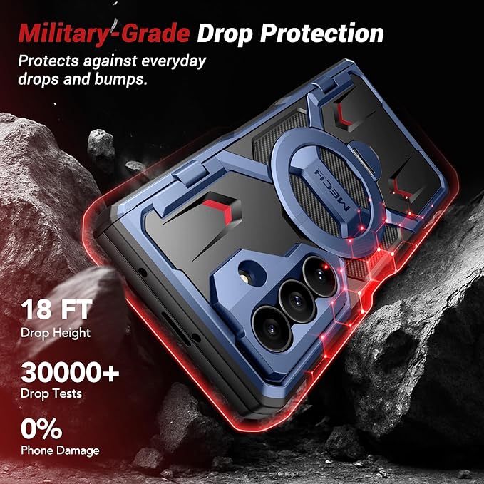 - [18FT Military Heavy Duty Drop Protection] This case for Samsung Z Fold 7 is made of a hard PC back cover and a TPU shock-absorbing frame. All corners are equipped with 360° shockproof airbags, which can withstand 18-foot military-grade drops without damage. The 3mm raised screen edge and 2mm raised full camera coverage design can resist daily shocks and wear and tear, providing reliable all-around protection for your Z Fold 7