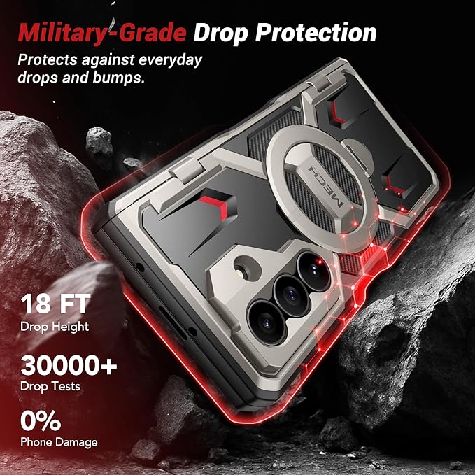 - [18FT Military Heavy Duty Drop Protection] This case for Samsung Z Fold 7 is made of a hard PC back cover and a TPU shock-absorbing frame. All corners are equipped with 360° shockproof airbags, which can withstand 18-foot military-grade drops without damage. The 3mm raised screen edge and 2mm raised full camera coverage design can resist daily shocks and wear and tear, providing reliable all-around protection for your Z Fold 7