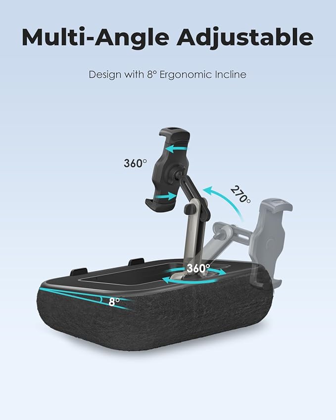 - 【Flexible Angle Adjustment】 Featuring a 360° rotating pull clip and a 180° foldable dual-arm, this stand can be freely extended and adjusted to find the perfect angle whether you’re lying down or sitting. It helps keep your neck relaxed and your gaze aligned while keeping your hands free. Note: For heavier devices, remove the stand arm and use the included hex wrench to tighten the screw inside the white quick-release arm connector, ensuring stable support without sagging.