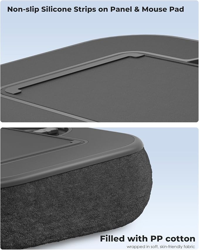 - 【Magnetic Mouse Pad & Ergonomic Cushion】 The smooth detachable lid doubles as a mouse pad—you can magnetically attach it to the right side of the storage compartment or use it separately. The soft cushion base with an 8° tilt ergonomic angle provides a comfortable reading pillow or laptop lap desk, reducing wrist and neck strain during long study or work sessions.(Note: Hand wash the cushion cover in cold water as needed.)
