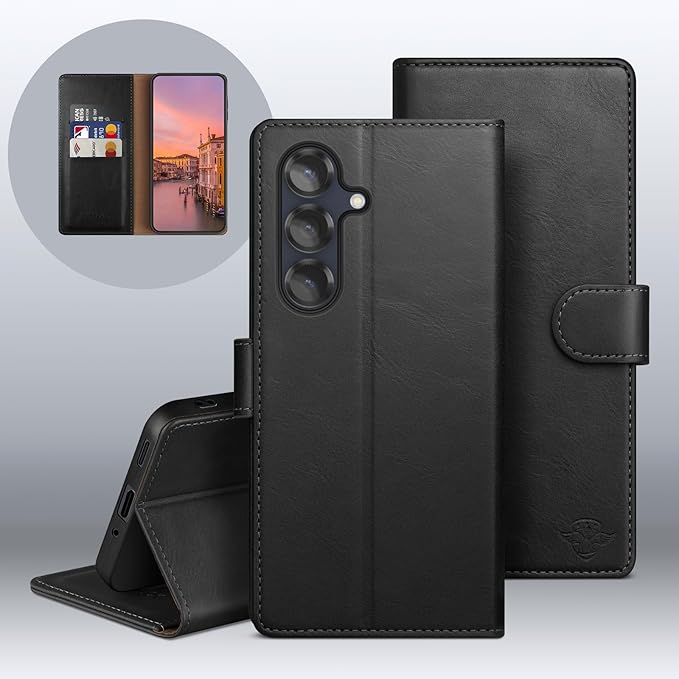 - 【RFID Blocking for Card Security】---Most credit cards, debit cards, and IDs contain embedded RFID chips, which can be wirelessly scanned by RFID readers within 3 meters (10 feet). This Samsung Galaxy S25 5G-exclusive leather wallet case uses specialized RFID-blocking materials to protect your card data from theft