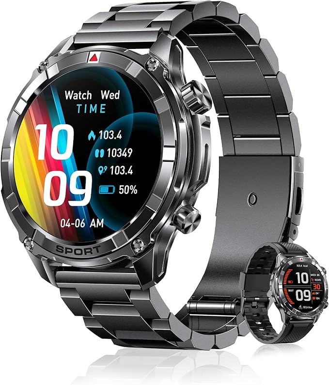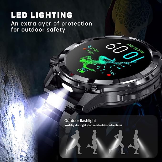 Smart Watches for Men with Bluetooth&Flashlight,1.52" IP68 Waterpro Men's Smart Watch,500mAh 100+ Sport Modes with Heart Rate/Sleep Monitor Fitness Trackers Compatible Android iOS(2 Straps)