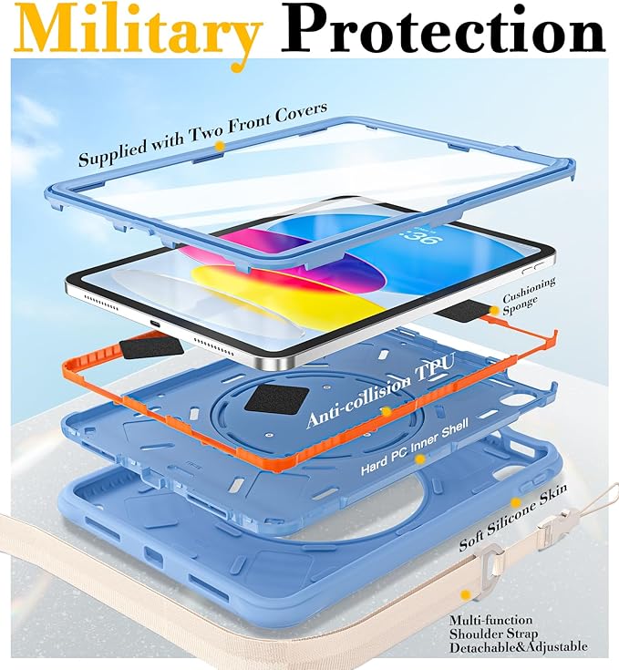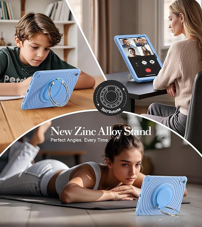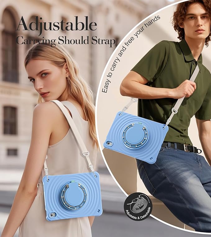 - [360°Rotating 180°Folding Ring Handle/Stand]:This iPad a16 11/10 Gen case features a 180° foldable & 360° rotating Zinc Alloy stand, offering limitless viewing angles for optimal comfort. Whether you're working, streaming, or browsing, effortlessly adjust your iPad to portrait, landscape, or hanging modes.The adjustable shoulder strap allows you to carry or hang your iPad at any time, so that you can provide more convenience in outdoor sports, traveling.