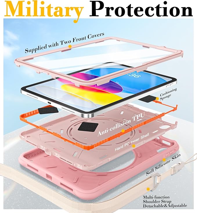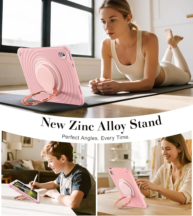 - [360°Rotating 180°Folding Ring Handle/Stand]:This iPad a16 11/10 Gen case features a 180° foldable & 360° rotating Zinc Alloy stand, offering limitless viewing angles for optimal comfort. Whether you're working, streaming, or browsing, effortlessly adjust your iPad to portrait, landscape, or hanging modes.The adjustable shoulder strap allows you to carry or hang your iPad at any time, so that you can provide more convenience in outdoor sports, traveling.