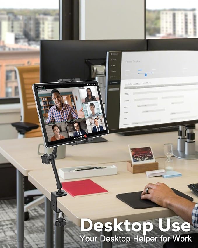 - 【Broad Compatibility for Phones, Tablets & Monitors】This desktop tablet stand fits most smartphones, tablets, and portable monitors with screen sizes from 4.7" to 16", including iPad Pro 13/12.9/11, iPad Air, iPad Mini, Galaxy Tab, Kindle, Fire HD, Surface, Arzopa, ASUS, Lepow, INNOCN, and more. Whether you're using it in the kitchen, home office, or workshop, this mount offers hands-free convenience for a wide range of devices