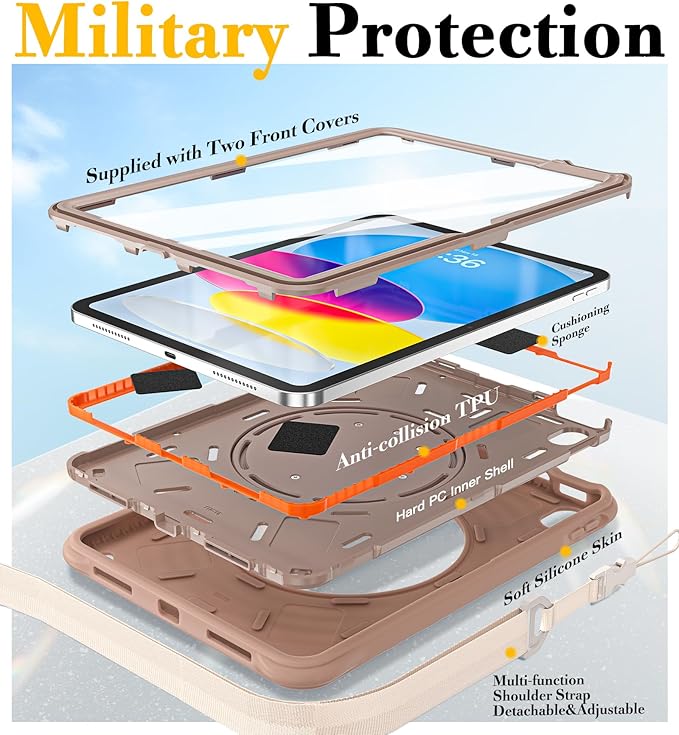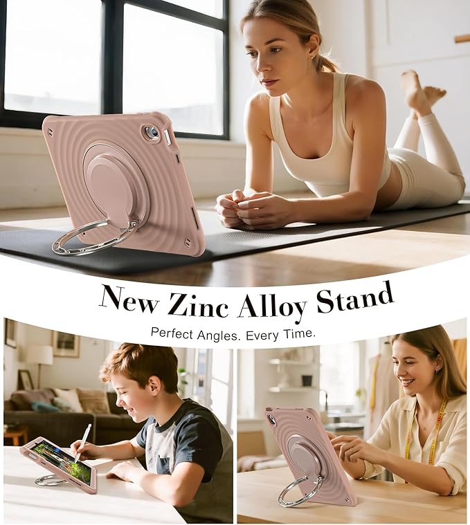 - [360°Rotating 180°Folding Ring Handle/Stand]:This iPad a16 11/10 Gen case features a 180° foldable & 360° rotating Zinc Alloy stand, offering limitless viewing angles for optimal comfort. Whether you're working, streaming, or browsing, effortlessly adjust your iPad to portrait, landscape, or hanging modes.The adjustable shoulder strap allows you to carry or hang your iPad at any time, so that you can provide more convenience in outdoor sports, traveling.