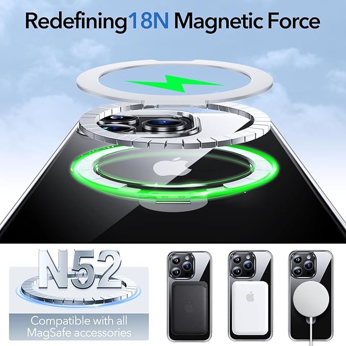 - [Secure & Strong Magnetic Loop] Fully Mag-Safe compatible, this slim transparent iPhone 16 Pro Max kickstand case features a powerful built-in magnet with Halbach-Mag technology and N52SH magnets, providing a secure connection with accessories like leather wallets, wireless chargers, and car mounts. The iPhone 16 pro max shockproof crystal clear case offers 40% stronger magnetic force (18N) than standard cases, ensuring a stable, wobble-free attachment. Designed for iPhone 16 Pro Max, this case aligns perfectly with your device, ensuring a stable, wobble-free attachment experience
