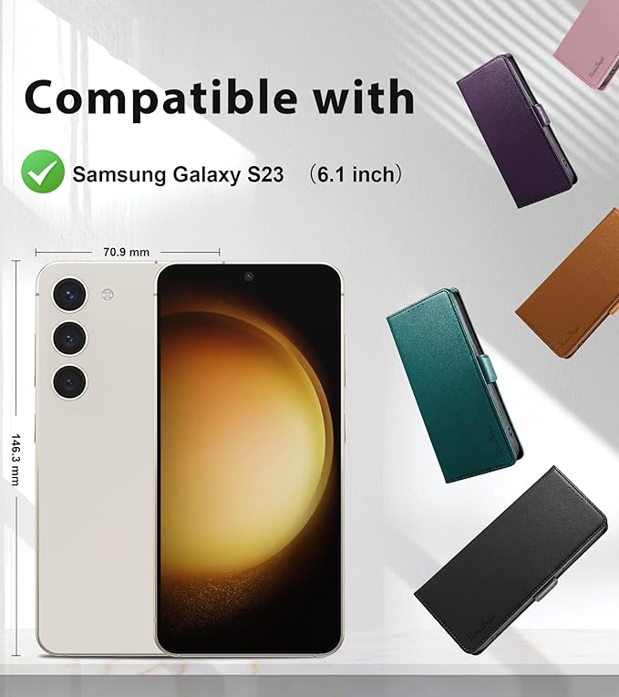 - 【Compatible with Samsung Galaxy S23 5G】:This Leather wallet case fits perfectly on the corresponding phone's sensors, buttons and camera. Sensitive keys, smooth fingerprint unlock, clear earpiece. Please make sure your phone is Samsung Galaxy S23 5G before purchase.