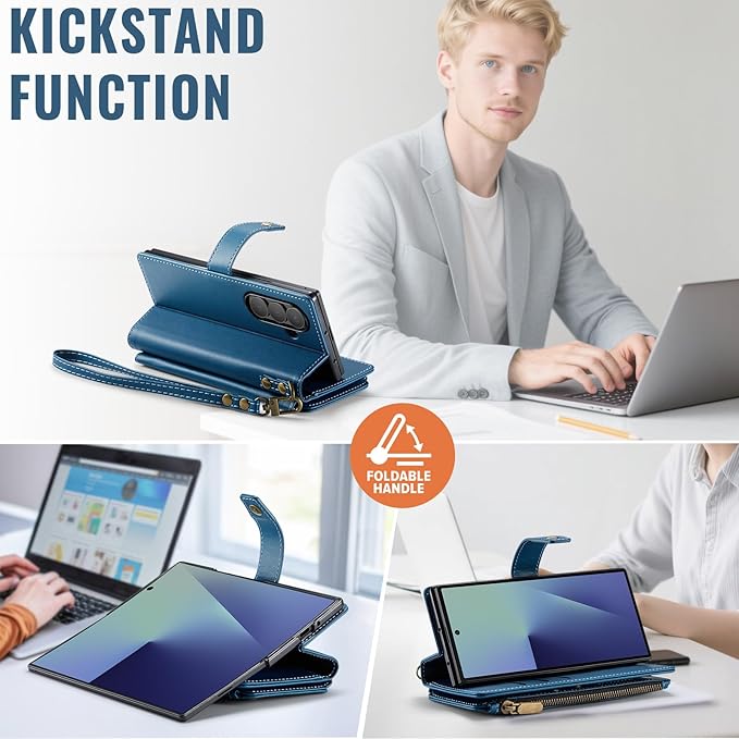 - for Galaxy Fold 7 Case with Kickstand: Built in double magnetic clasp of wallet case, it can hold your phone stably; The hands-free kickstand flip holster allows your phone standing independently, which is perfect for video calls, reading, working or movie-watching anywhere