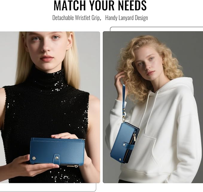 Vinich for Samsung Galaxy Z Fold 7 Wallet Case with Card Holder, Detachable Strap RFID Blocking Credit Slots Kickstand Shockproof Phone Cover for Women Men, Blue