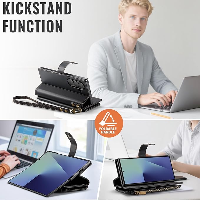 - for Galaxy Fold 7 Case with Kickstand: Built in double magnetic clasp of wallet case, it can hold your phone stably; The hands-free kickstand flip holster allows your phone standing independently, which is perfect for video calls, reading, working or movie-watching anywhere