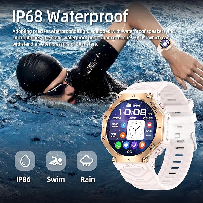 - 【3ATM Waterproof & Rugged Build】 Engineered for outdoor conditions with 3ATM waterproof protection. Whether you're sweating, washing hands, or caught in rain—this rugged smart watch handles it all