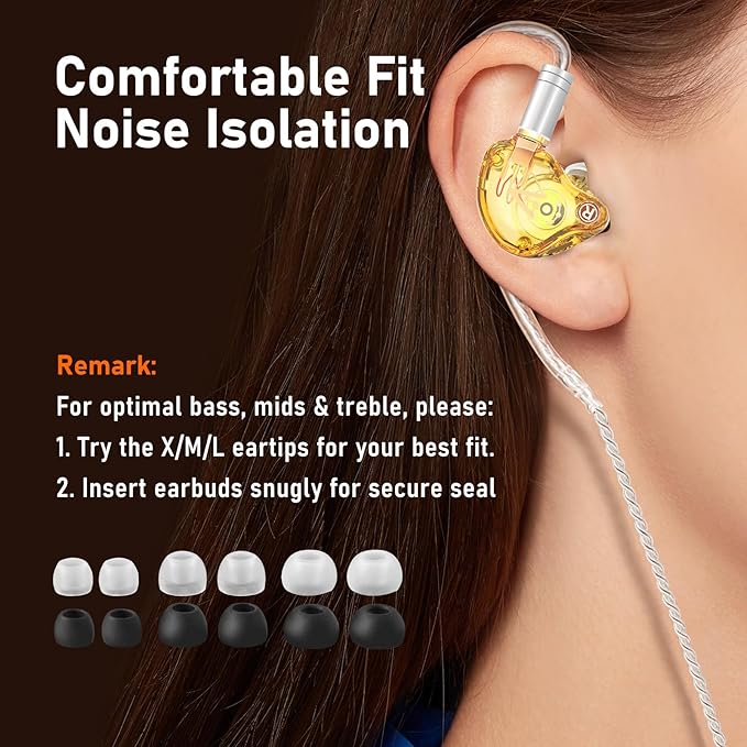 - COMFORTABLE FIT & NOISE ISOLATION - Ergonomically designed to fit the ear canal, Vibes 202 IEM headphones feature preformed over-ear earhooks for a secure fit and keep cables out of the way. With 6 pairs of soft, breathable eartips (in 2 colors and 3 sizes), they ensure optimal comfort and stability while effectively blocking ambient noise for immersive listening.