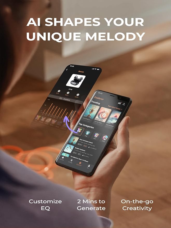 - 【Revolutionary Boean AI Music Generation】Unleash your creativity with our advanced Boean AI music generation app! Regardless of your musical background, you can transform your mood, style preferences, or ideas into original music in just 2 minutes. Additionally, the Boean APP supports customizing your favorite EQ modes, allowing you to accurately enjoy various vocal genres such as jazz, blues, and classical music. Let’s start your own music festival with the EP10
