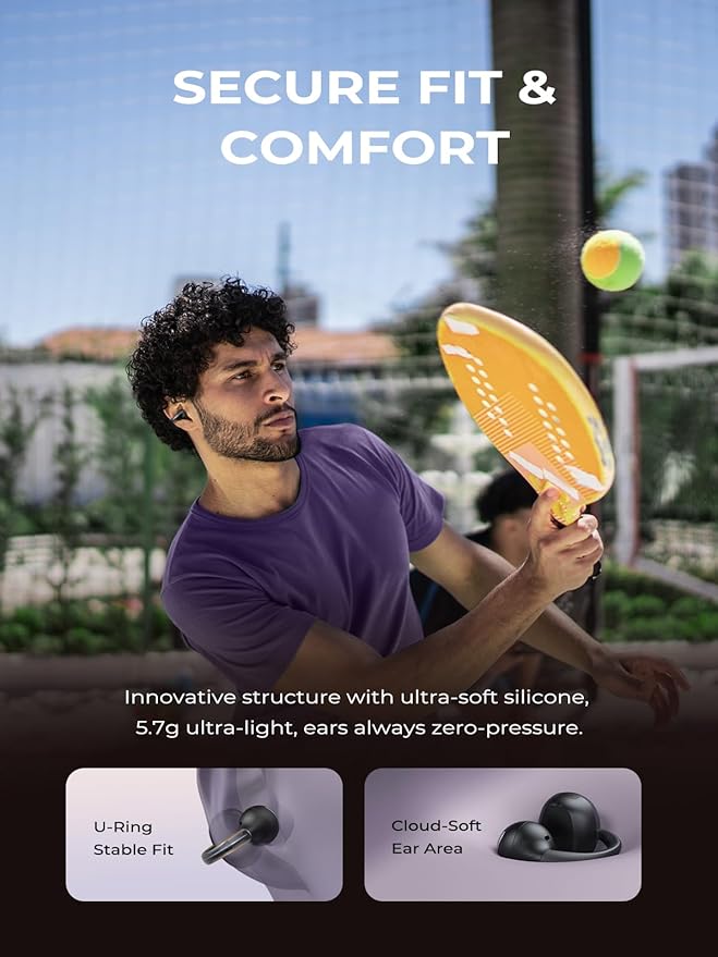 - 【30H of Listening Time & IPX6 Waterproof】Get up to 2 hours of playback with just 10 minutes of charging. Combined with the charging case, the total playback time reaches 30 hours, keeping you energized all day long. The EP10 clip on earbuds features a protective nano-coating, offering IPX6 water resistance, so you don’t have to worry about sweat or rain interference. Let these open ear headphones be your perfect sports companion for any outdoor activity