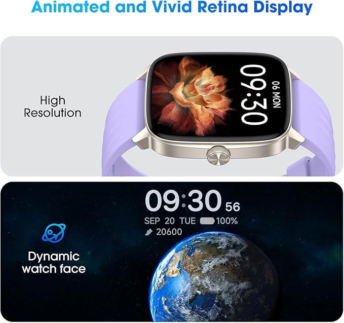 • Large Clear Display & Customizable Watch Dials: This smartwatch features a large LCD color display, more clear to view and easier to operate on watch, especially friendly for both elderly! There are 5 built-in dials available without App. If paired with APP, there are cloud watch faces and customize exclusive dials.
